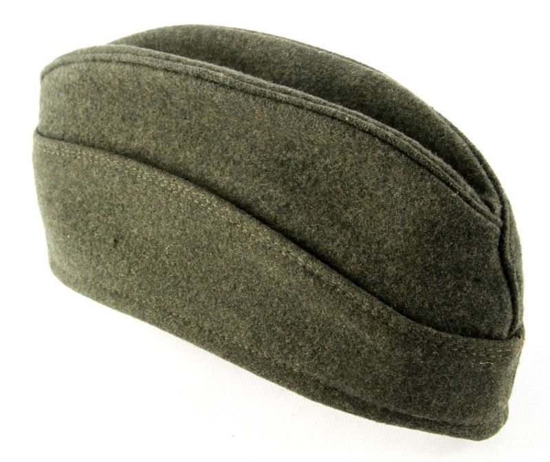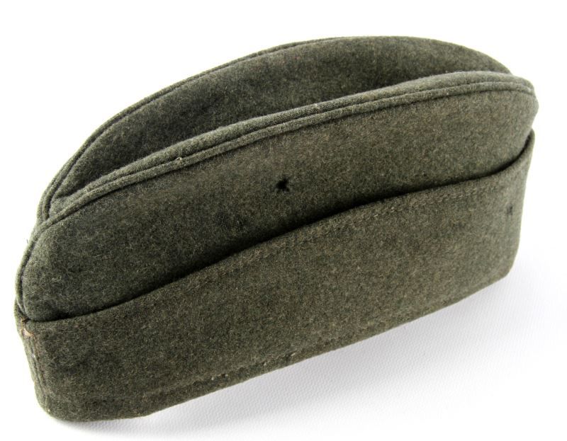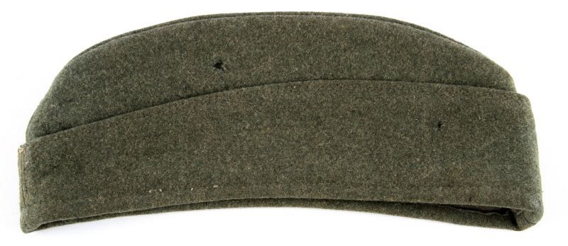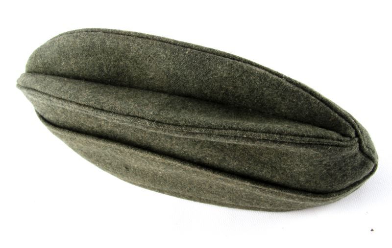 German overseas cap made of wool in field grey with insignias missing. Grey satin lining with "Divadlo CS. Armady" and "RBNr 0/0062/0431" printed on the liner. Overall very good condition. This lot has a reserve.