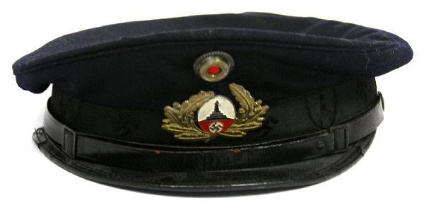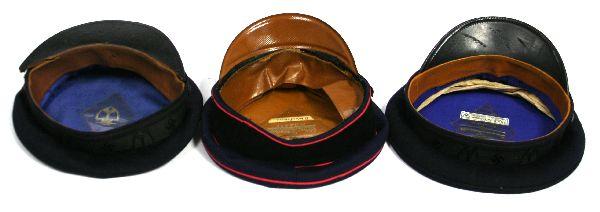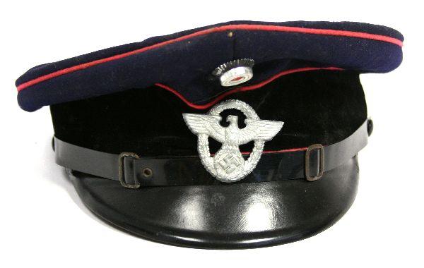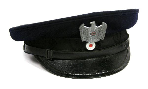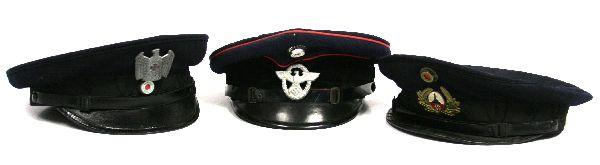 A lot of 3 Third Reich police and or other public official visors all in less than good , mothing and or some crushing to all.