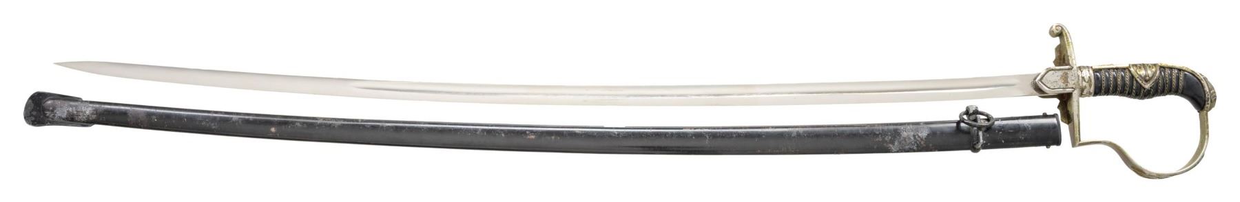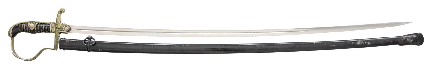 OFFICER'S SWORD BY EICKHORN. A fine WWII German Army officer's sword of the Eickhorn Field Marshal's series call a Prinz Eugen pattern measuring 38 1/2" overall with plain 32 3/4" single fullered blade. The blade is marked at the ricasso " (logo) ORIGINAL EICKHORN SOLINGEN". Silvered hilt with an eagle crossguard, embellished knuckle bow & backstrap and a Wehrmacht eagle on top of the pommel. Wire wrapped black composite grip and black enameled scabbard. CONDITION: blade shows original factory polish. Hilt and scabbard show light wear. (02-25010/BF). $500-800.
