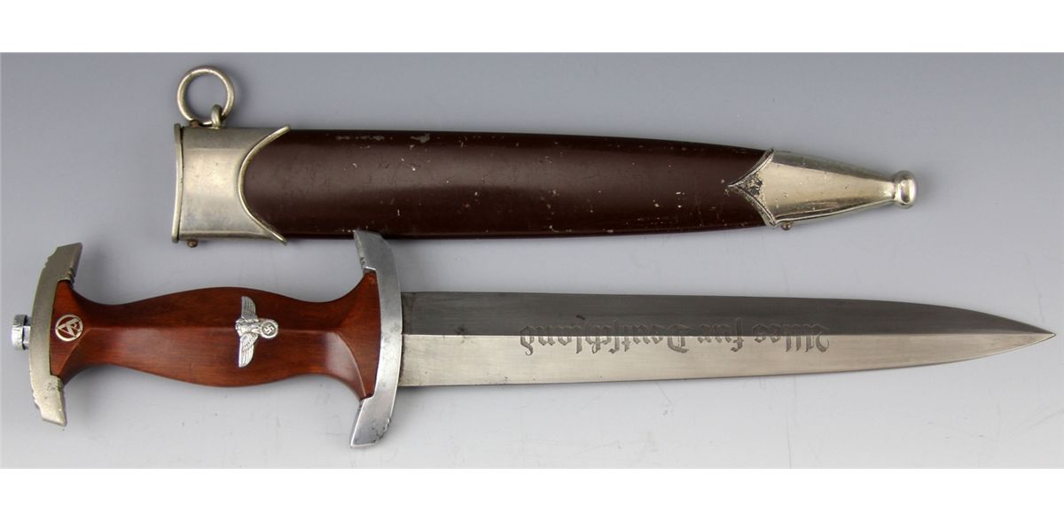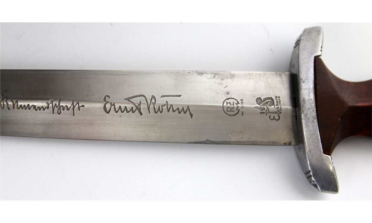 WWII GERMAN SA ERNST ROHM DAGGER EICKHORN RZM Type: Dagger Country: Germany Blade Length: 8.75" Overall Length: 13.75" Condition: Very good with minor wear and discoloration.