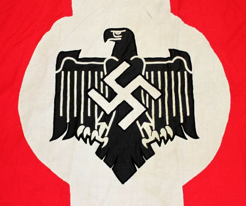 WWII German sports flag used at Third Reich sports rallies. Measures 57 by 45 inches. Very good condition. This lot has a reserve.