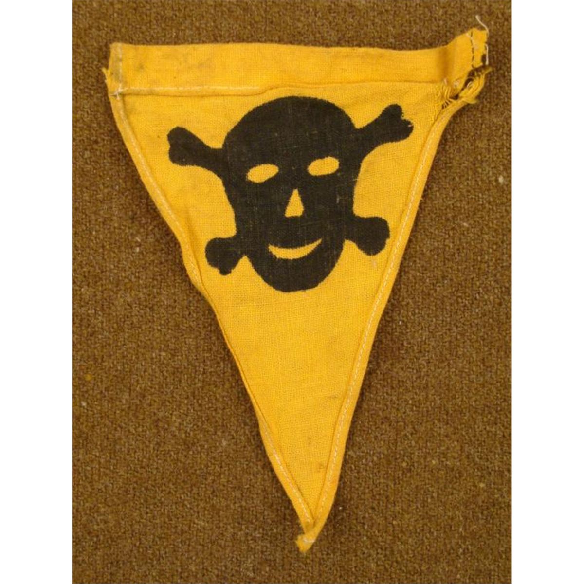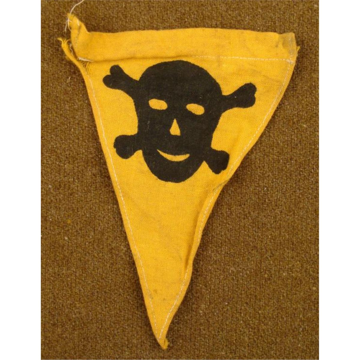 WWII GERMAN TRIANGULAR LAND MINE MARKER-YELLOW WITH BLACK SKULL & CROSSBONES * DOUBLE SIDED-PERIOD PIECE *
