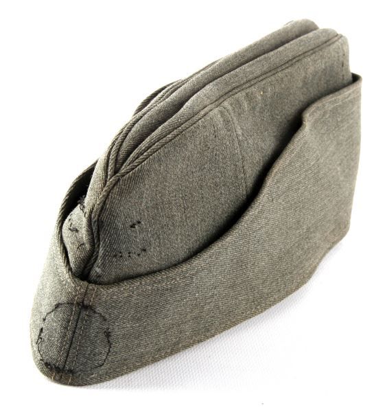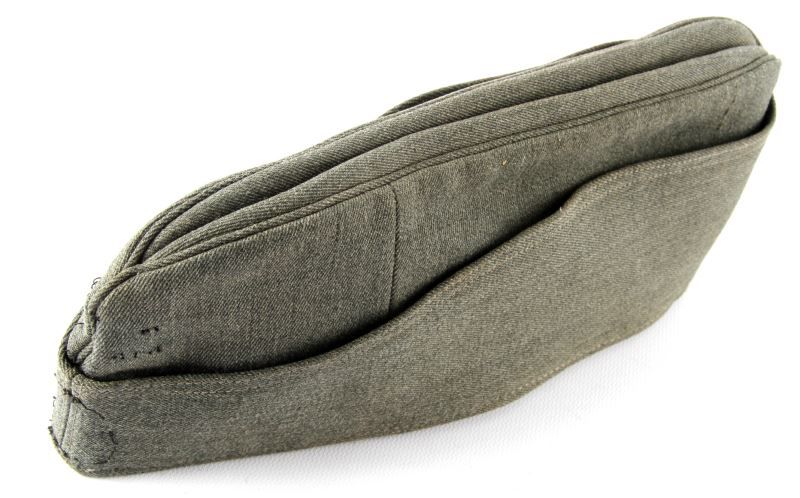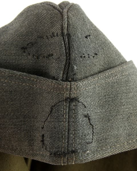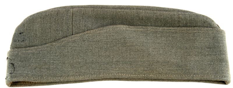 German SS Officer overseas cap made of high quality Italian officer cloth, both insignias are missing. The green liner is imprinted 1944. Overall very good condition. This lot has a reserve.