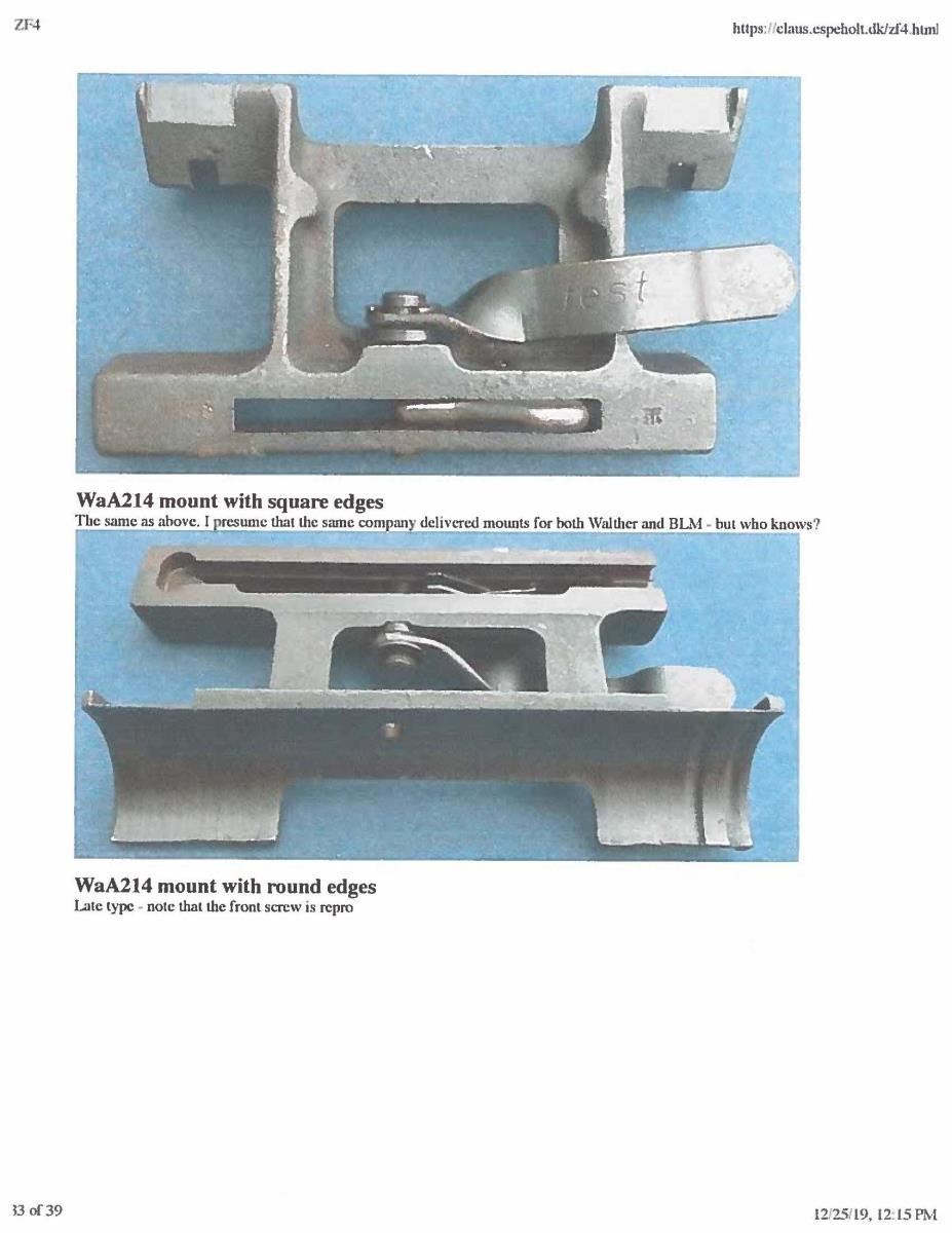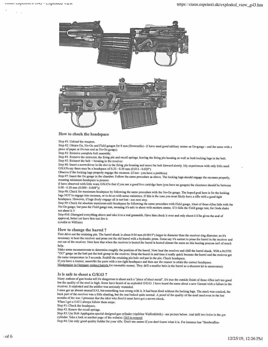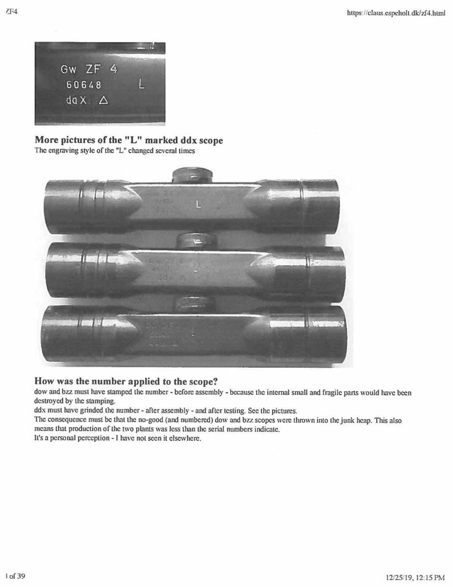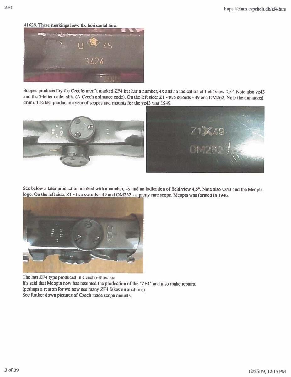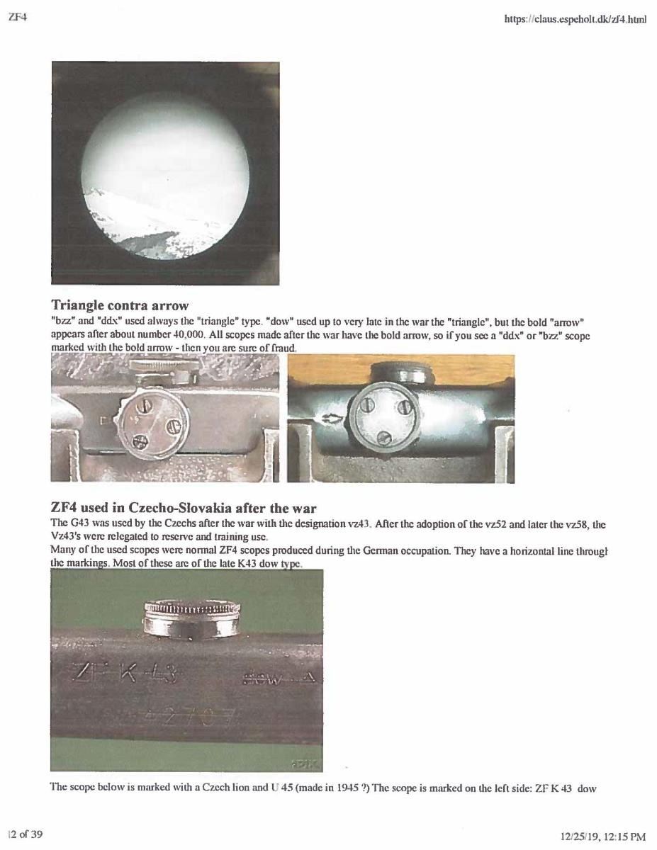 Cal. 8mm Mauser. S# 1340c. Bbl. 21 3/4" w/ threaded muzzle. Ac44 coded receiver w/ German eagle, serial number & "G.43" marking. Matching stamped numbers on bolt & charging handle. Electropencil matching firing pin housing & locking lugs. Rifle fitted with Apfeltor gas piston & shooters kit. No dust cover present. Tangent rear sight graduated to 1200m. Blade front sight w/ hood. Reproduction ZF4 scope & mount. ZF4 scope has post w/ very good plus optics. Unnumbered laminated stock & handguard w/ indiscernible Waffenamt on wrist. Nose of stock appears to be missing a bit of wood, as bandkeeper protrudes outward a couple inches. Left side sling provision w/ black leather sling. Cleaning rod present. MAGS; 2-10 rd. one reproduction & one original marked "aye" & "G43". UNATTACHED ACCESSORIES: reproduction leather lens caps, original gas piston w/ 2 spring, Allen wrench & Apfeltor instruction sheet. CONDITION: stock set has a 1 1/2" crack on right side of recoil bolt, a chip near right sling cut, scattered dings & handling marks. There is a patch of moderate tool marks on bbl. near gas piston. Metal otherwise retains 65% black enamel & phosphate finishes w/ scattered flaking. Good bore w/ some frosting & light pitting but strong rifling. (22-3349/MJC). CURIO. $3500-4500.