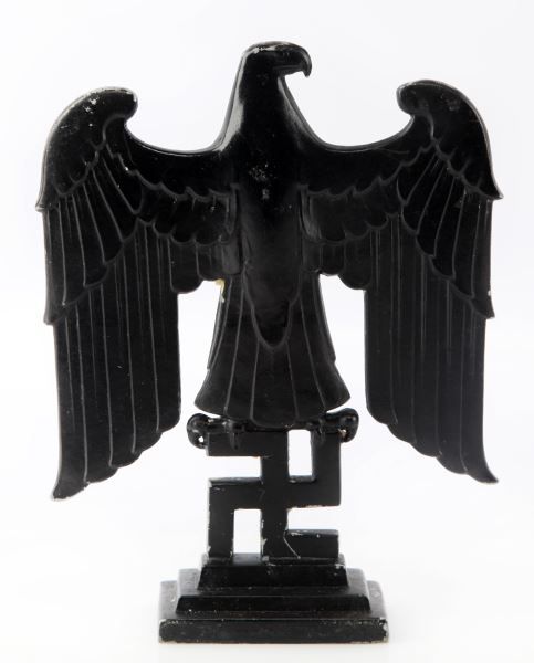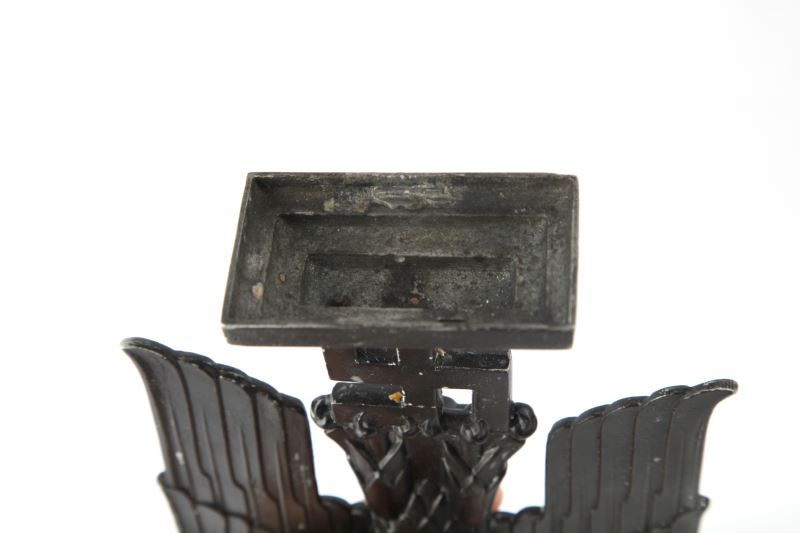WWII German Wehrmacht eagle desk ornament. Zinc-like metal material, with dark paint. Some losses to paint, otherwise good. This lot has a reserve.