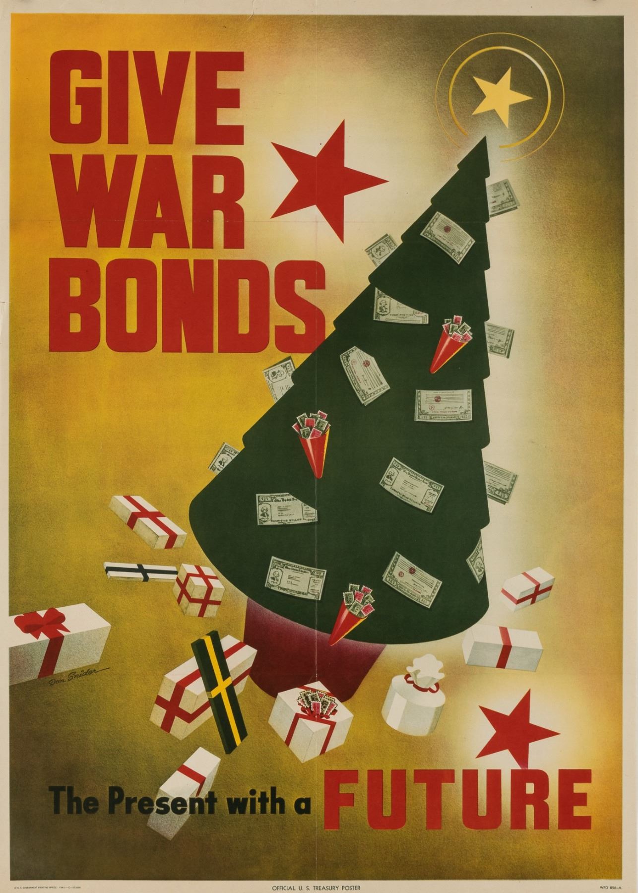 'Give War Bonds - The Present with a Future', artwork by Don Snider, Official U.S. Treasury Poster, U.S. Government Printing Office 1943-O-553896, 28 x 22 inches. Minor damage on left edge and mailing folds.