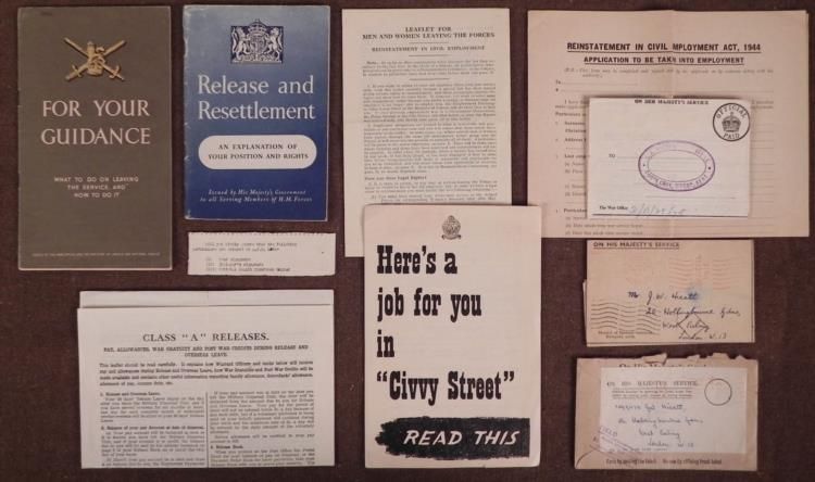 WWII GROUPING FOR A BRITISH SOLDIER LEAVING THE MILITARY-NAMED TO LONDONER * GREAT HISTORY WITH LETTER AND DDRESS OF OWNER
