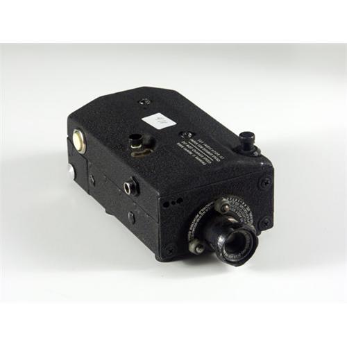 A WWII US Army Airforces Gun Camera. The data plaque reads: spec. No. 31353, Type N-6, Serial Number AC445 1390, The Lackner Co. The case is in good condition with some slight deterioration of coating around the hinge and some wear to coating around scre