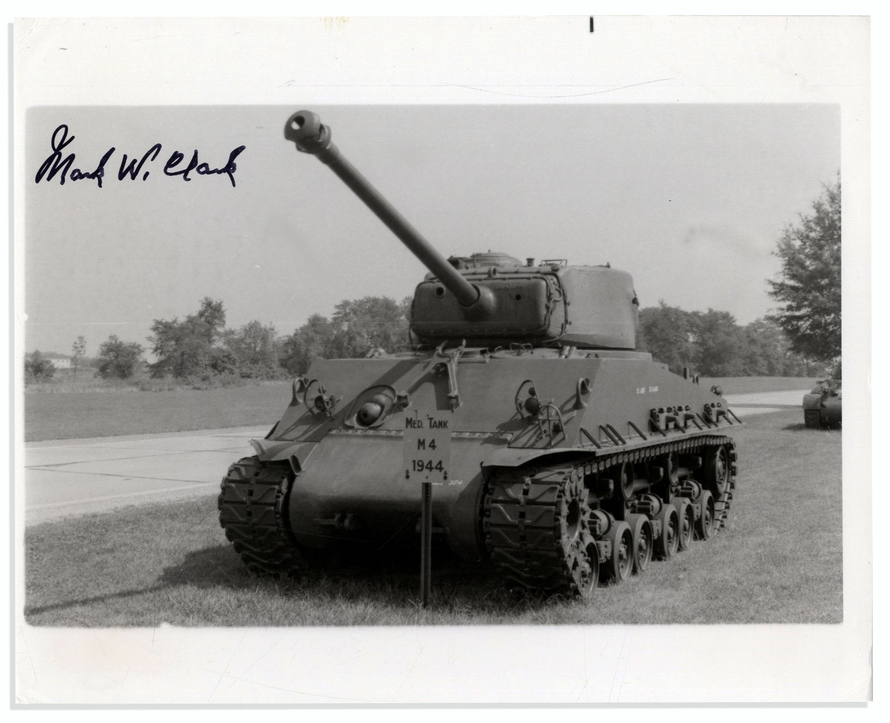 General Mark Clark 10'' x 8'' Glossy Signed Photo of a WWII Tank -- Near Fine