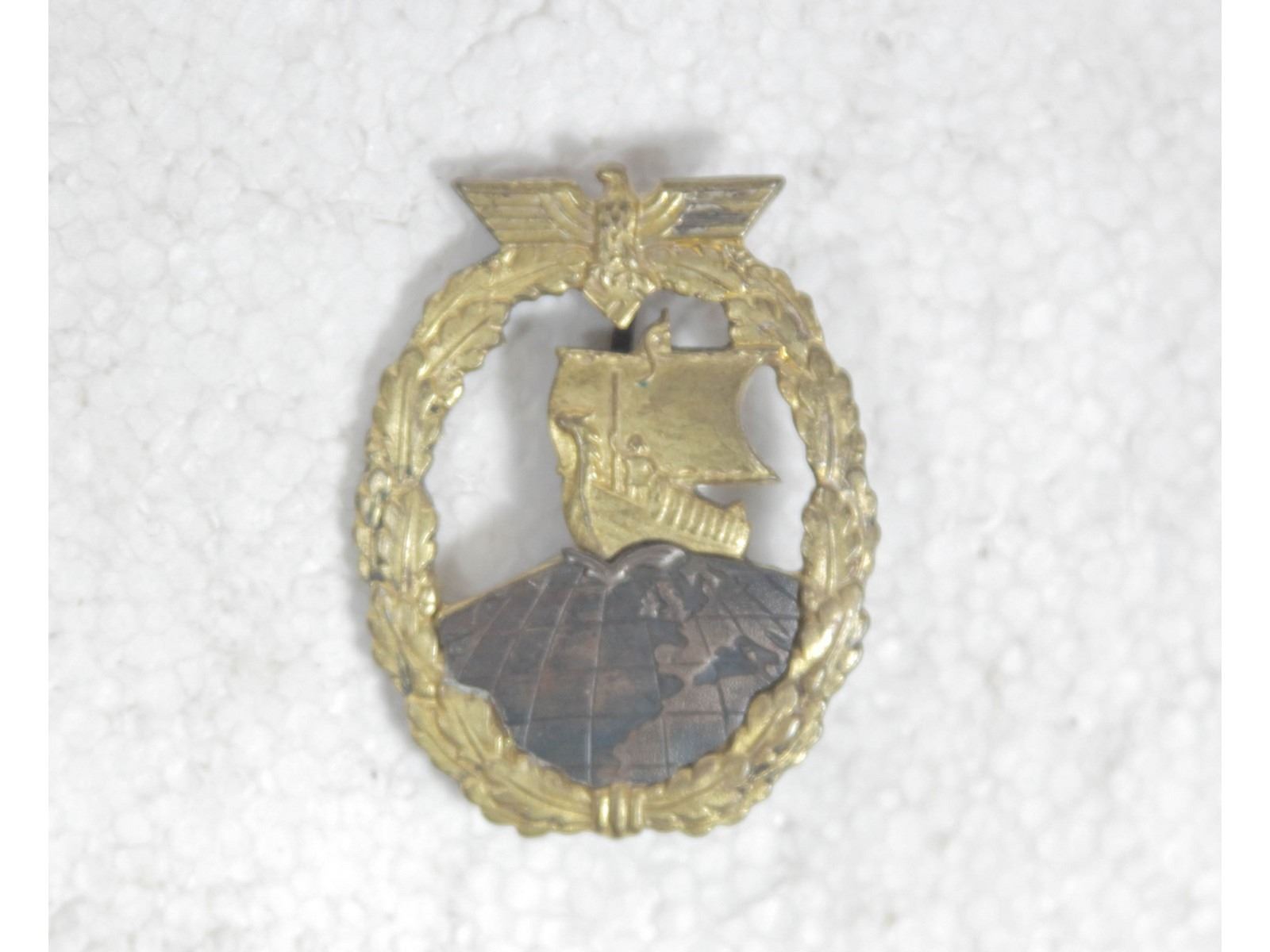 WWII German Kreigsmarine/Navy auxiliary cruiser badge. Awarded for crew members aboard supply ships. Maker marked on back.