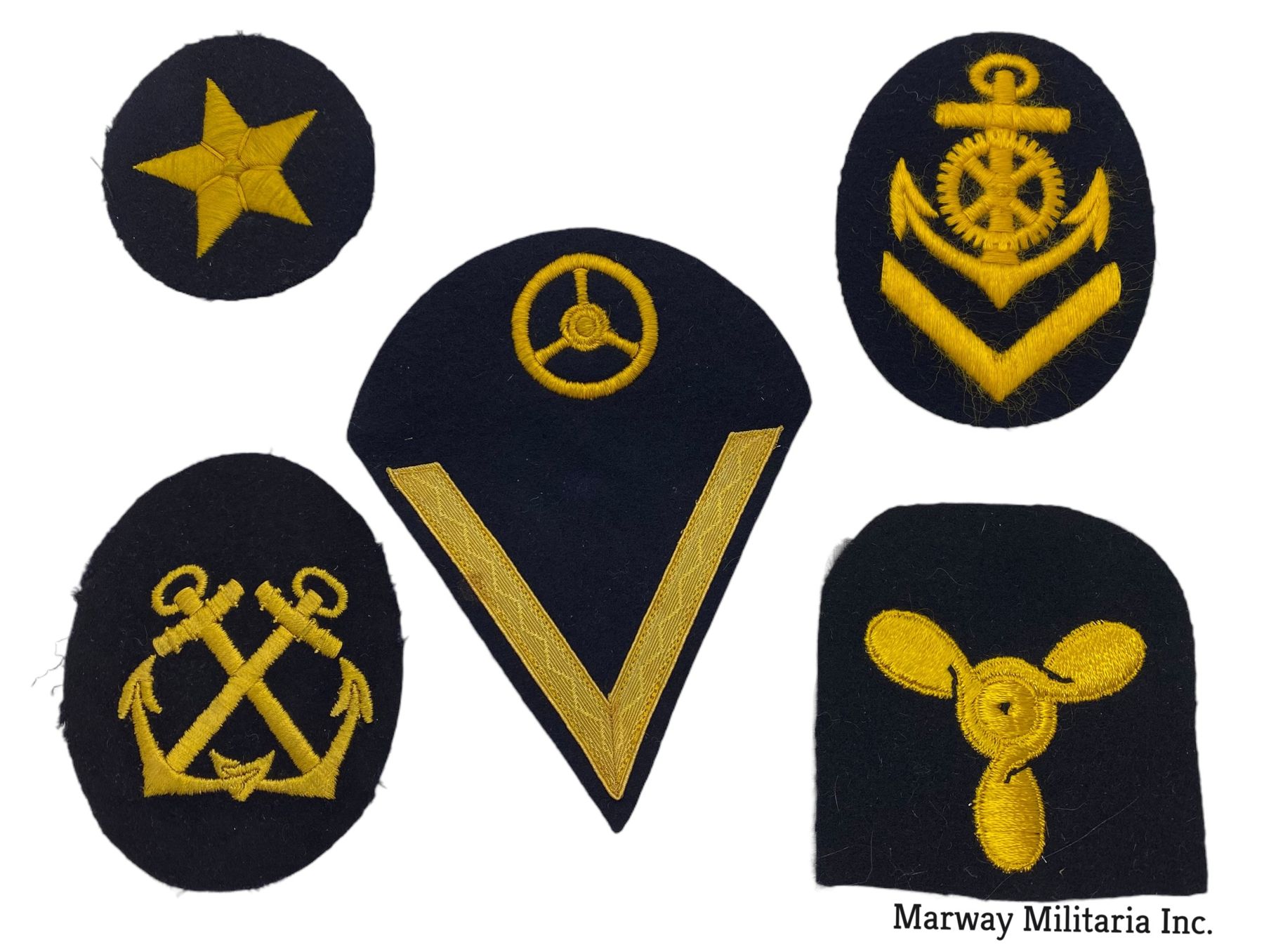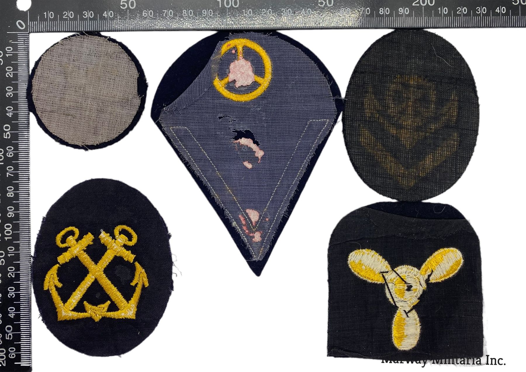 Lot of 5 WW2 German Kriegsmarine Navy Cloth Patches Some w Embroidery