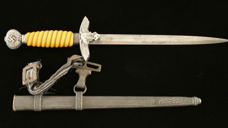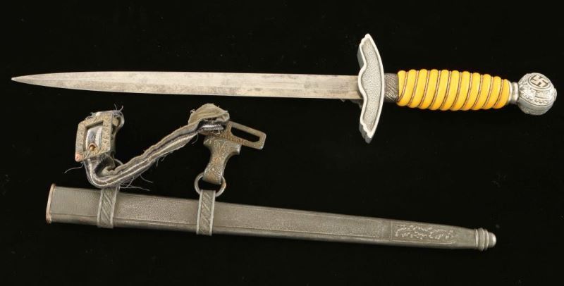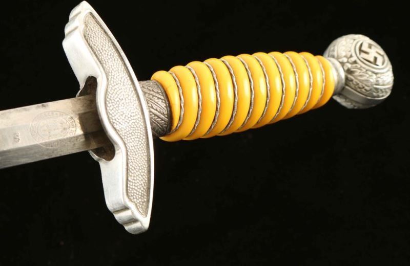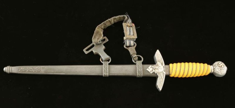 Maker 'Paul Weyersberg' yellow wire grip intact. Leather washer intact. Remnants of poor condition hanger remaining.