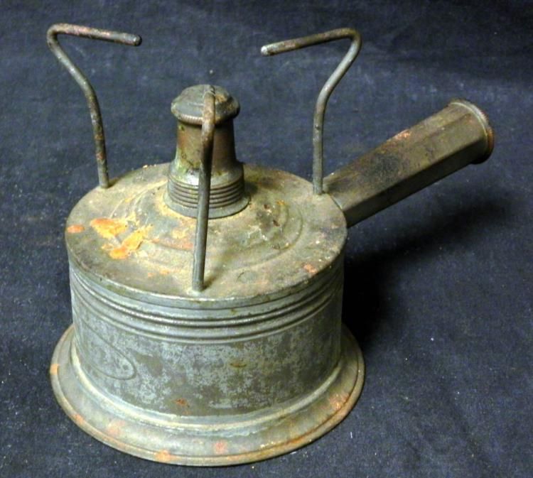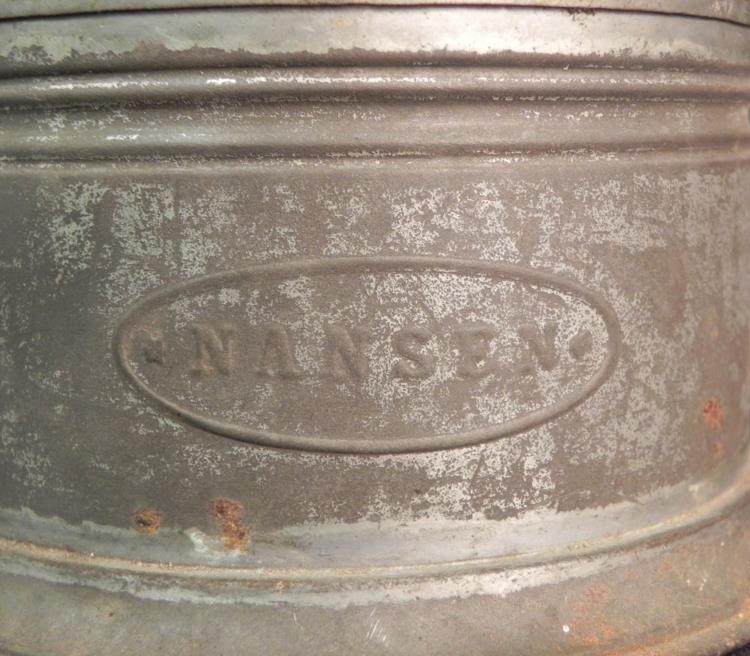 Available is this WWII German Military Small Personal Field Burner. It was primarily used for cooking. Both the top and the cap on the side twist off. The bottom is stamped "G.M.T. & Bro - Germany". The front is stamped "Nansen".