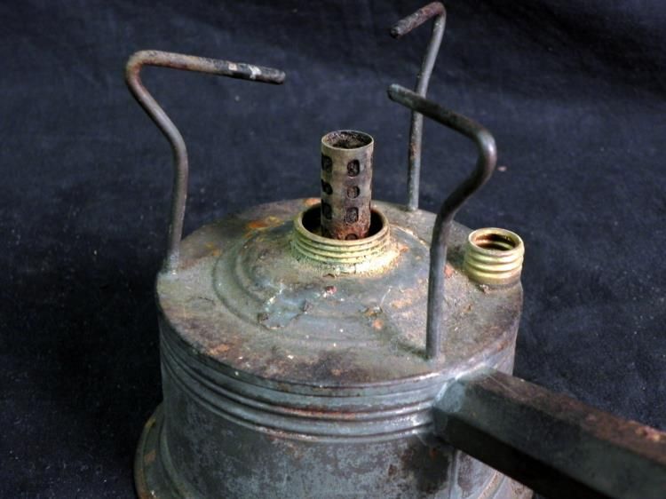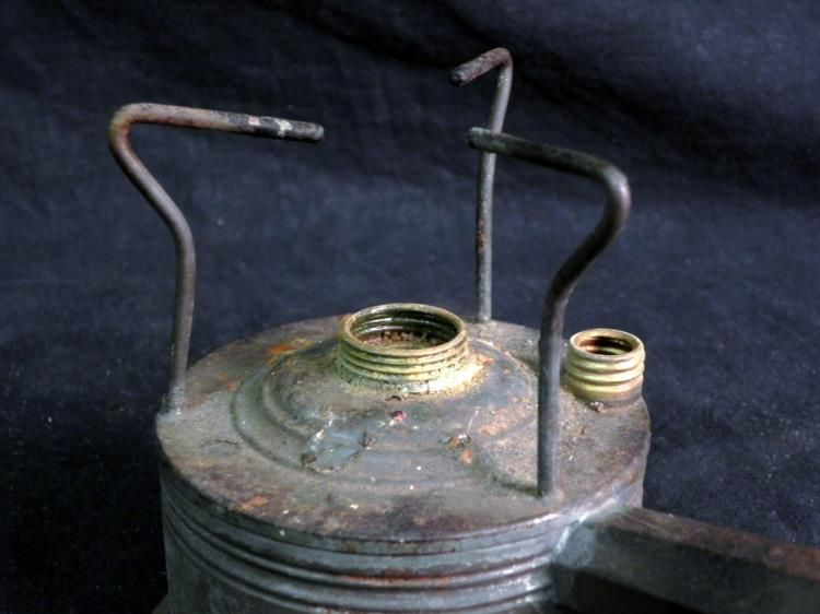 Available is this WWII German Military Small Personal Field Burner. It was primarily used for cooking. Both the top and the cap on the side twist off. The bottom is stamped "G.M.T. & Bro - Germany". The front is stamped "Nansen".