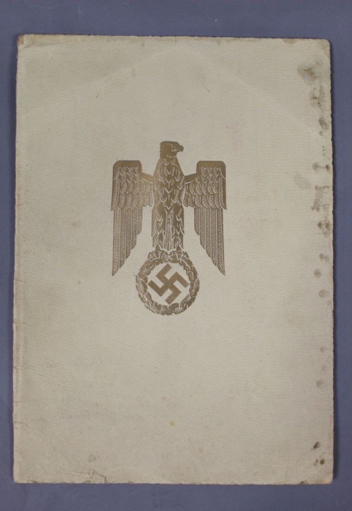 WWII promotion documents signed by Hitler & Admiral Raeder. Document names to Kovetten Kapitas Dr. Franz Flesche. Comes with its original award folder. 10" x 14 1/2". Comes with his military history in English. In very good condition. See photos. Disclaimer: The item(s) featured in this listing have been described to the best of our ability, and authenticity is unknown. Buyer assumes all responsibility with regard to buying and is afforded every opportunity to request additional photos, ask detailed questions, and otherwise make inquiries into the specifics of the item. Buyer is responsible for making the decision on whether or not to determine if item is authentic. Donley Auctions makes every effort to provide accurate information and all content and information in a given listing is provided "as is" and without warranty, implied or otherwise. Donley Auctions assumes no liability or responsibility should information provided be incorrect. No refunds are given for any military relics, regardless of age or condition.