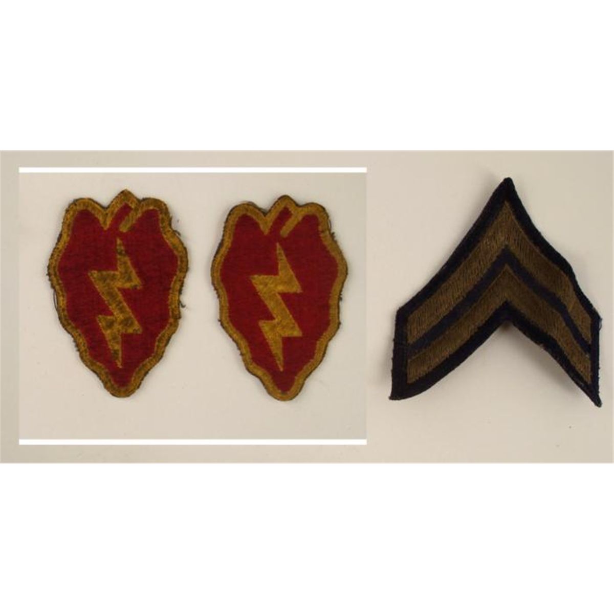 WWII INSIGNIA 25TH DIVISION & CHEVRONS * PERIOD PIECES *