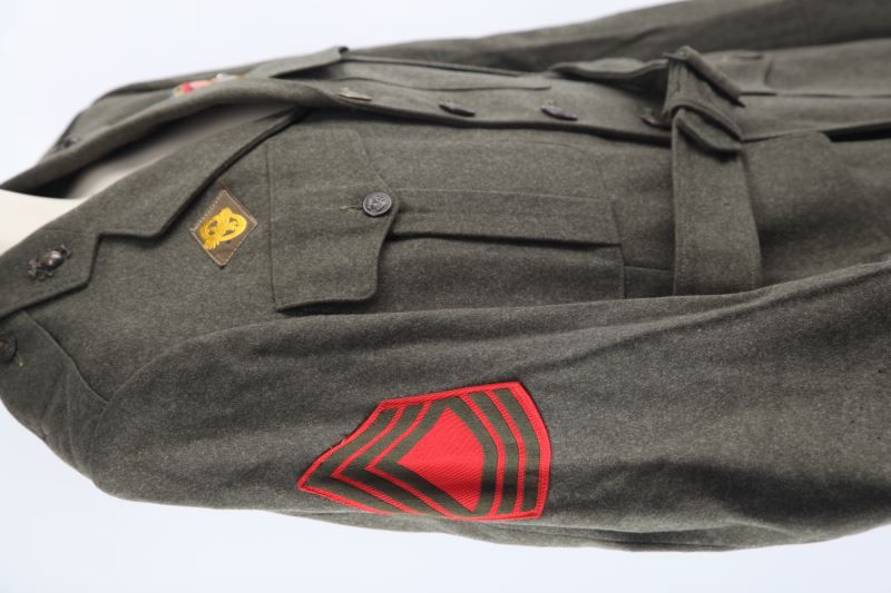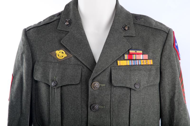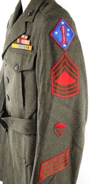 Red felt assault border, ribbons including Presidential Unit Citation, EGA's, "Aussie" made 1st Marine Division patch, named J.C. Prince inside sleeve.