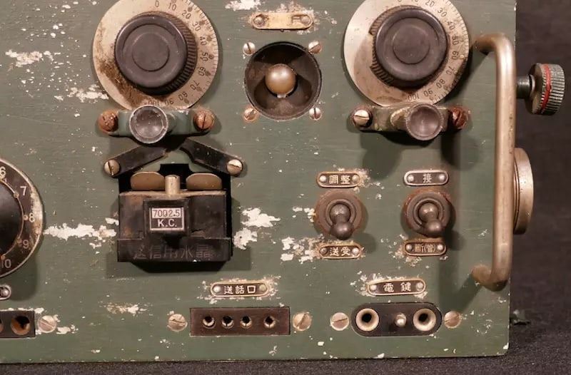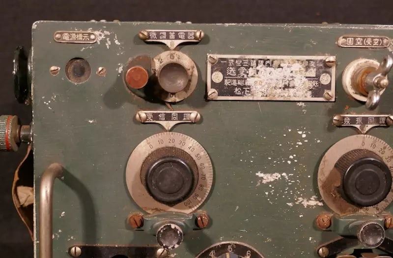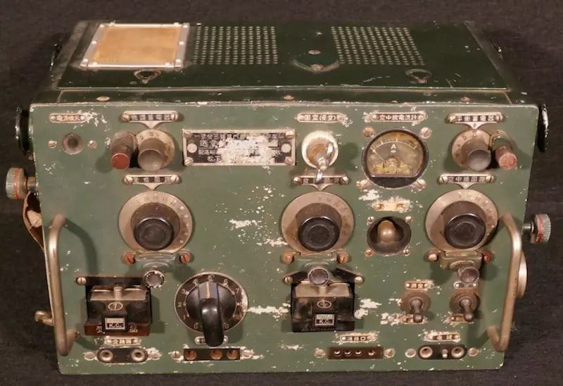 WWII Imperial Japanese Navy IJN Type 1 Mark III Transceiver for theMitsubishi A6M Zero ‘Type 1 Air ForceModel: Air No. 3 Radio Matsushita Electric Corporation Aircraft Division, February 1945’ with Navy Acceptance Anchor.Matsushita Electric eventually became the Panasonic Corporation.This Exceptional Imperial Japanese Zero Radio is the Successor A6M Communication System to the Type 96-1 Transmitter / Receiver.This Particular Radio is the 2nd Example of the Type 1 Mark III Transceiver Known to Exist, the Only Other Known Example Worldwide Resides in The UEC Radio Museum in Tokyo.https://www.museum.uec.ac.jp/database/sf/sf350/s355.html