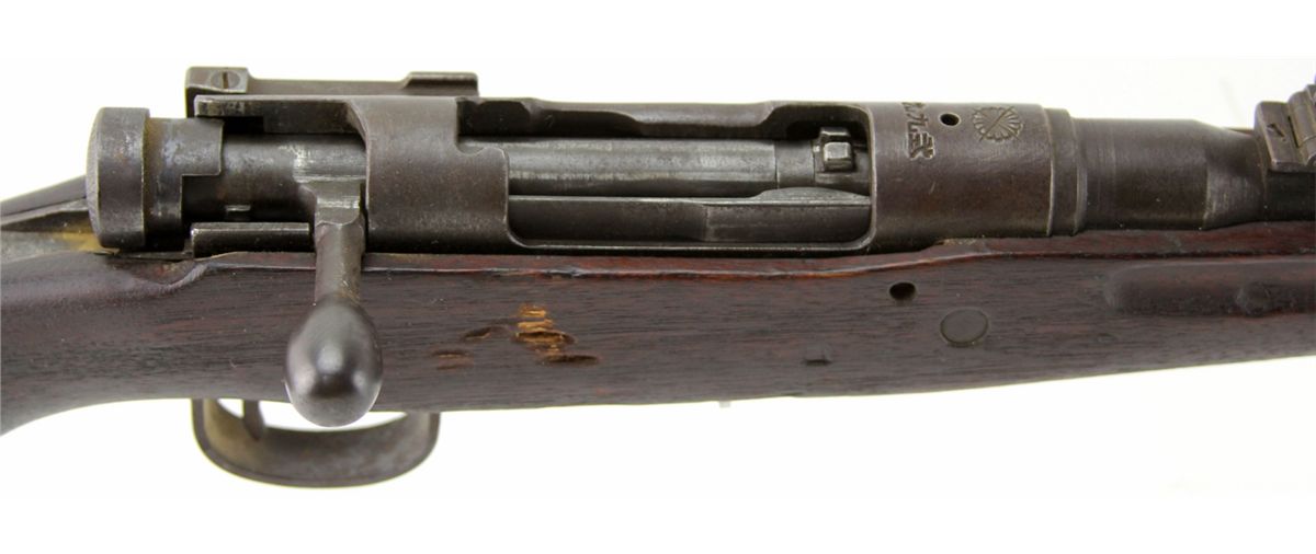 WWII JAPANESE ARISAKA TYPE 99 RIFLE WWII Japanese Arisaka Type 99 rifle. Mum crossed out. forth series mark prefixing serial number on left of receiver, with Izawa Jyuko Arsenal markings following. Type: Rifle Manufacturer: Arisaka Model: T99 Caliber / Gauge: 7.7×58mm Arisaka Serial Number: 5095 Condition: Bore is dark but serviceable, bluing about 40%, stock in good condition, with expected surplus rifle wear and dings.
