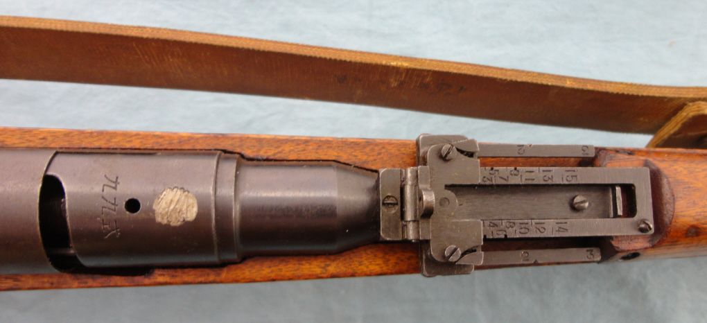 #84464; 7.7 cal. Std. 99 Config. All visible serial numbers appear to match. Mum is struck. Very nice + stock. Complete anti-aircraft rear sight & a nice rubberized canvas original sling.