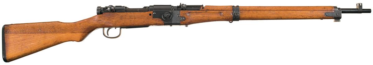 Manufactured at the Nagoya Arsenal. It still retains the Kanji marking on top of the receiver but the Chrysanthemum is mostly ground off but still visible. It has the military style tangent rear sight graduated to 1500 meters with the anti-aircraft wings and the inverted "V" front sight with guards. Has a muzzle cover. It has matching numbers on the various parts and the front and rear sections of the takedown assembly have matching assembly numbers, "316". It has a smooth hardwood stock, with full length hand guard, grasping grooves, and drain hole ahead of the take down mechanism.
