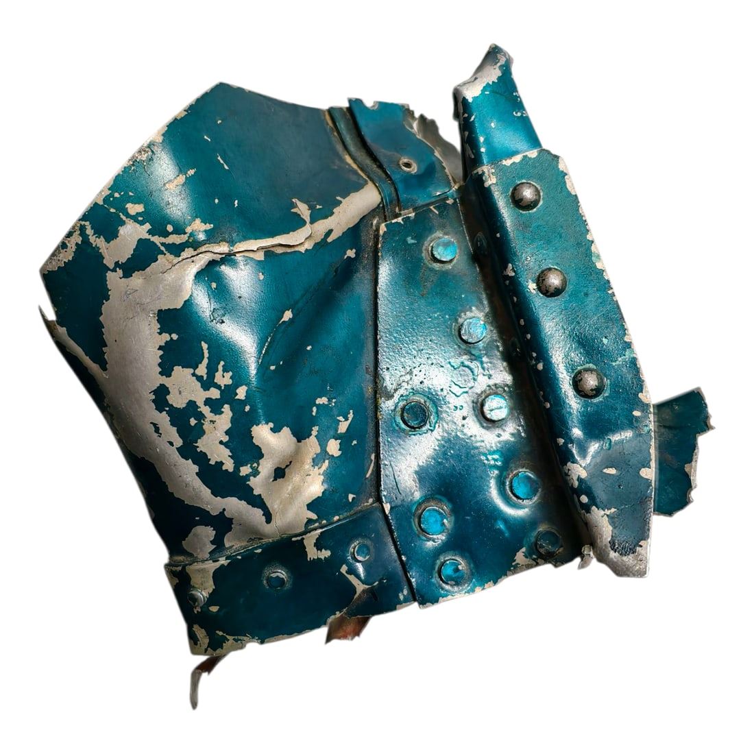 WWII Japanese Torpedo Aircraft Fragment Shot Down by US Marine. This was brought home by a US Marine who served in the Pacific during the war. The aircraft was shot down in the Solomon Islands. Note the blue / green color on the fragment. This was a protective, translucent lacquer coating called Aotake which the Japanese used to prevent corrosion on aluninum parts.