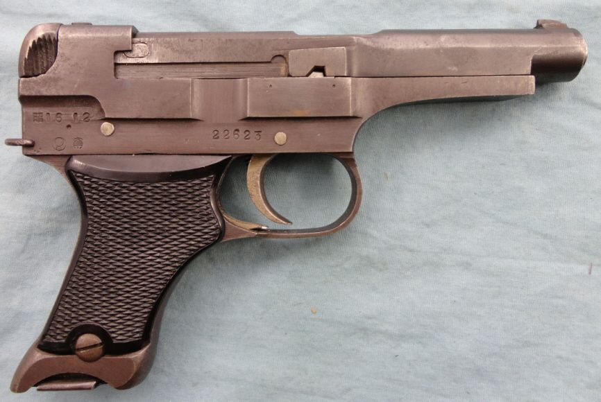 #22623; 8mm Std. Military Configuration. Serial number on magazine does not match gun. Mfg. 16-12 (Dec. 1941). Mechanically gun appears to function well. Original finish is fading to an even brown patina.