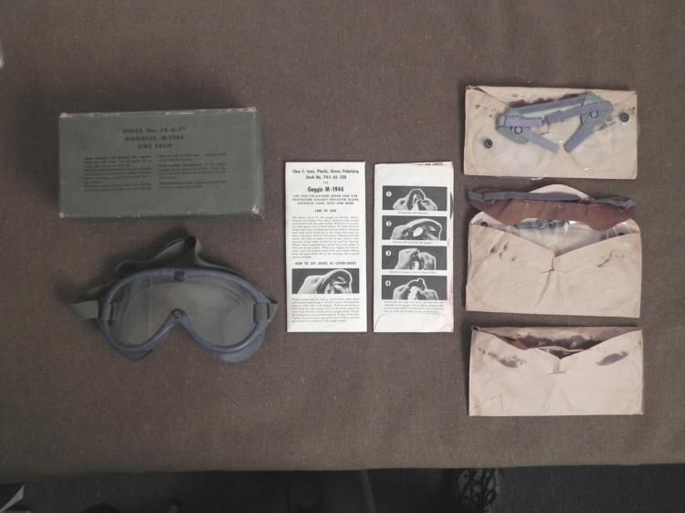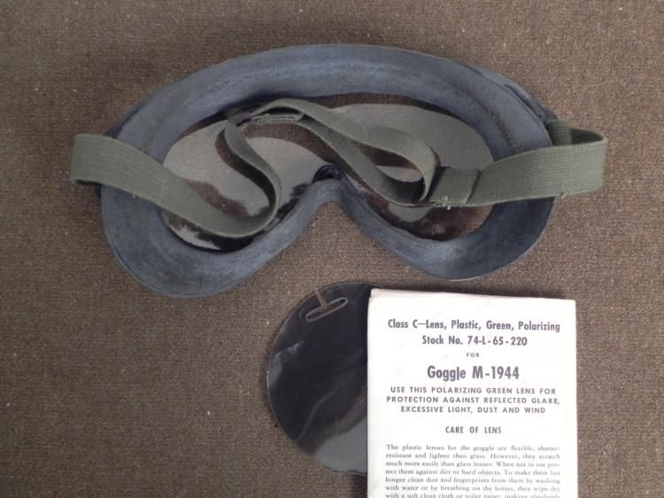 WWII M-1944 POLAROID GOGGLES-WITH ORIG BOX/INSTRUCTIONS & SAND GOGGLES WWII STOCK #74-L-65-220---EXC CONDITION-NICE ORIGINALS-5 EXTRA SETS OF INSERT LENSES