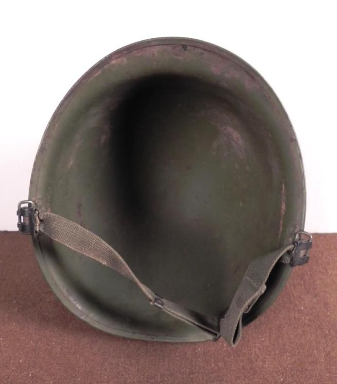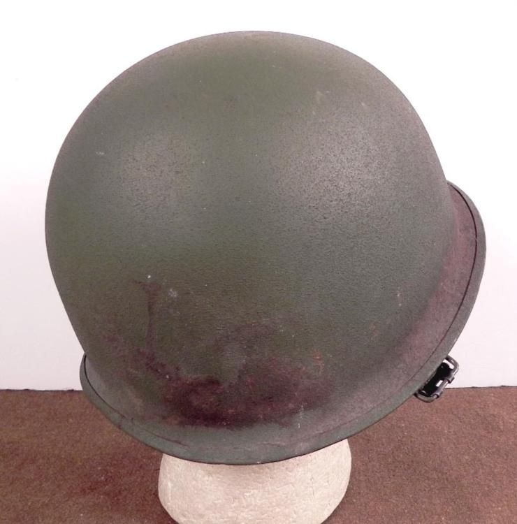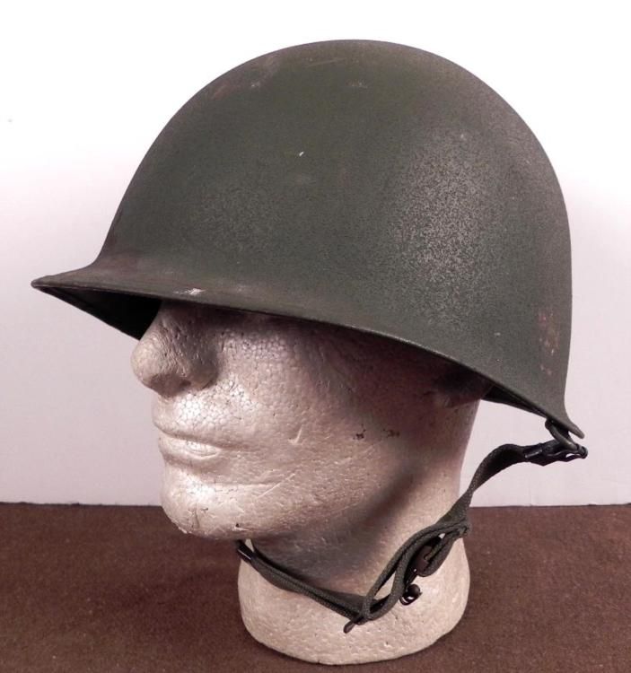 WWII M1 COMBAT HELMET-OD-SAND TEXTURE-CLAW & BALL CHINSTRAP-REAR SEAM * NICE CONDITION-LINER NOT PRESENT *