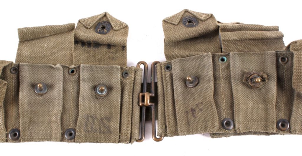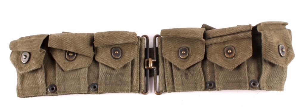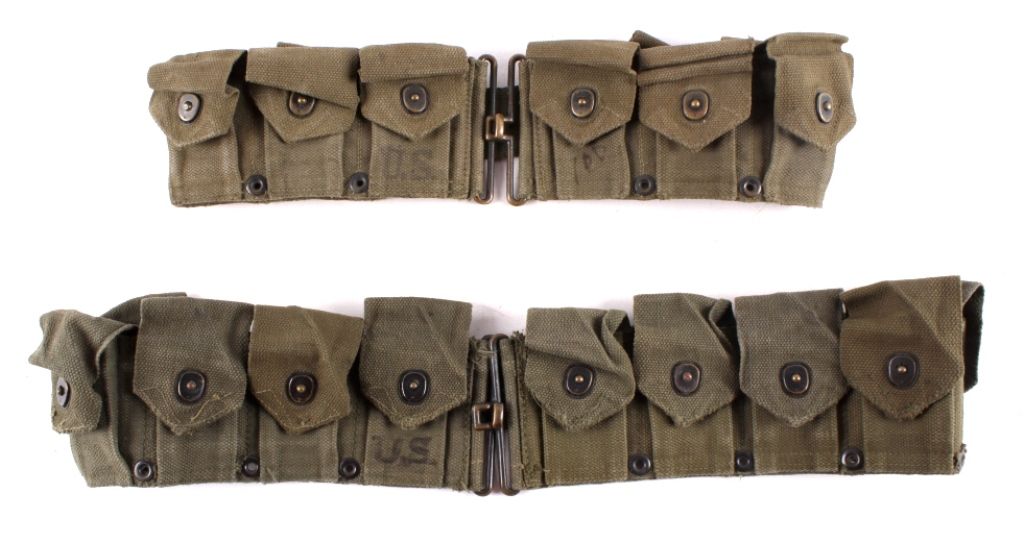 The lot features two original World War II dismounted cartridge belts, the Model 1923 and Model 1936. These are both United States issue pieces showing overall good shape. These are 36" l x 4.5w and 45"l x 4.5w