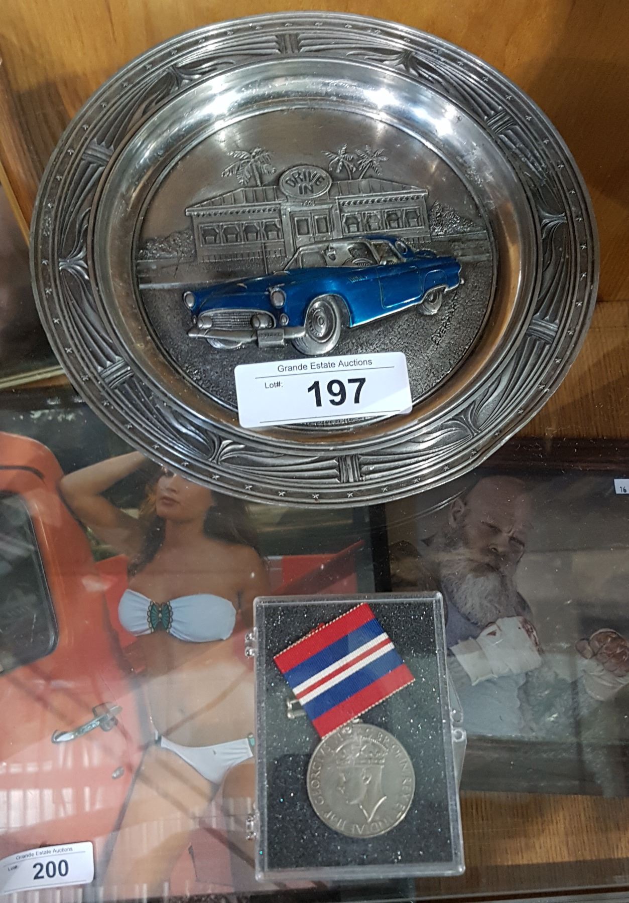 WWII MEDAL & PEWTER THUNDERBIRD CAR PLATE