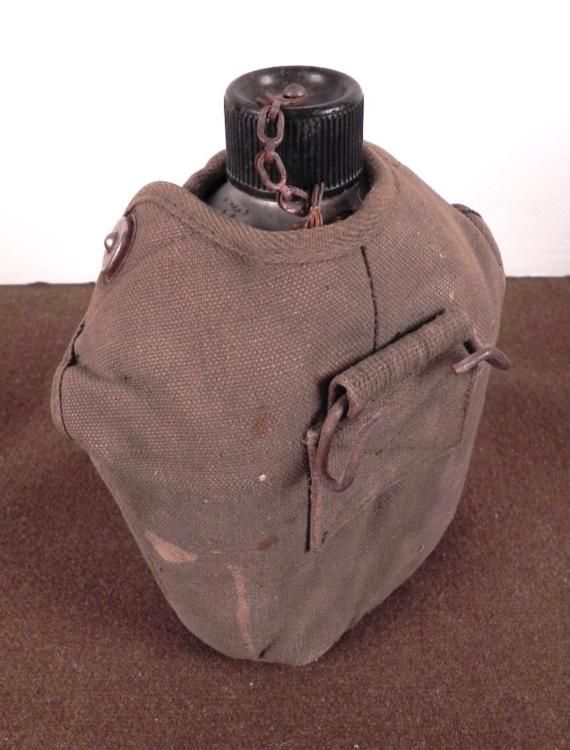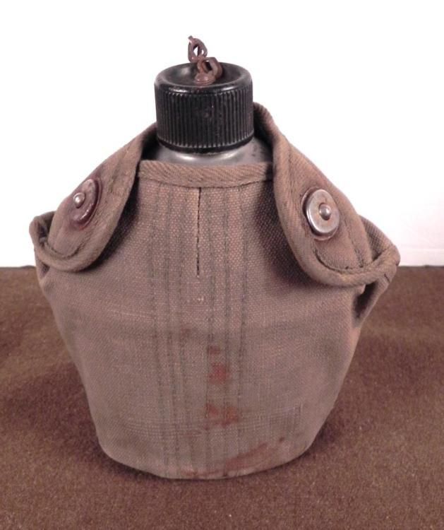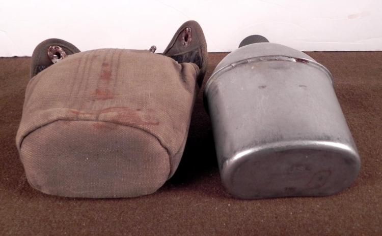 WWII METAL FIELD CANTEEN & OD CANVAS COVER NICE CONDITION