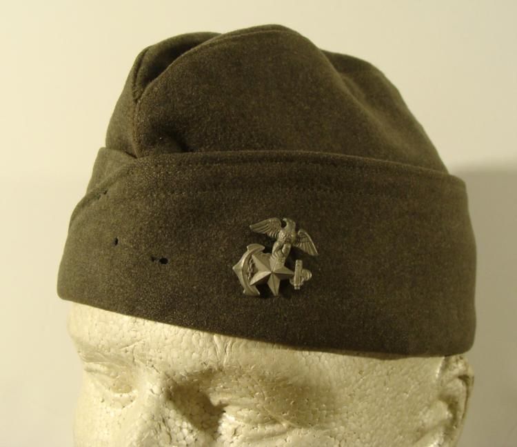 WWII MUSMC MARINE BRIGADIER GENERAL SIDE CAP * HAS INSIGNIA WITH SINGLE SILVER STAR OVER ANCHOR--SIZE 6 7/8 *