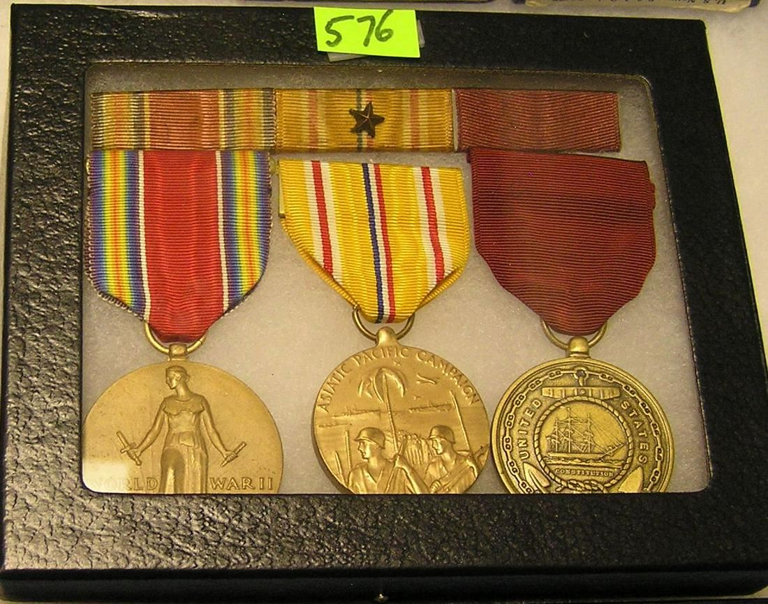 WWII Military veterans three piece medal, ribbon and bar set est. value $300.00-$325.00