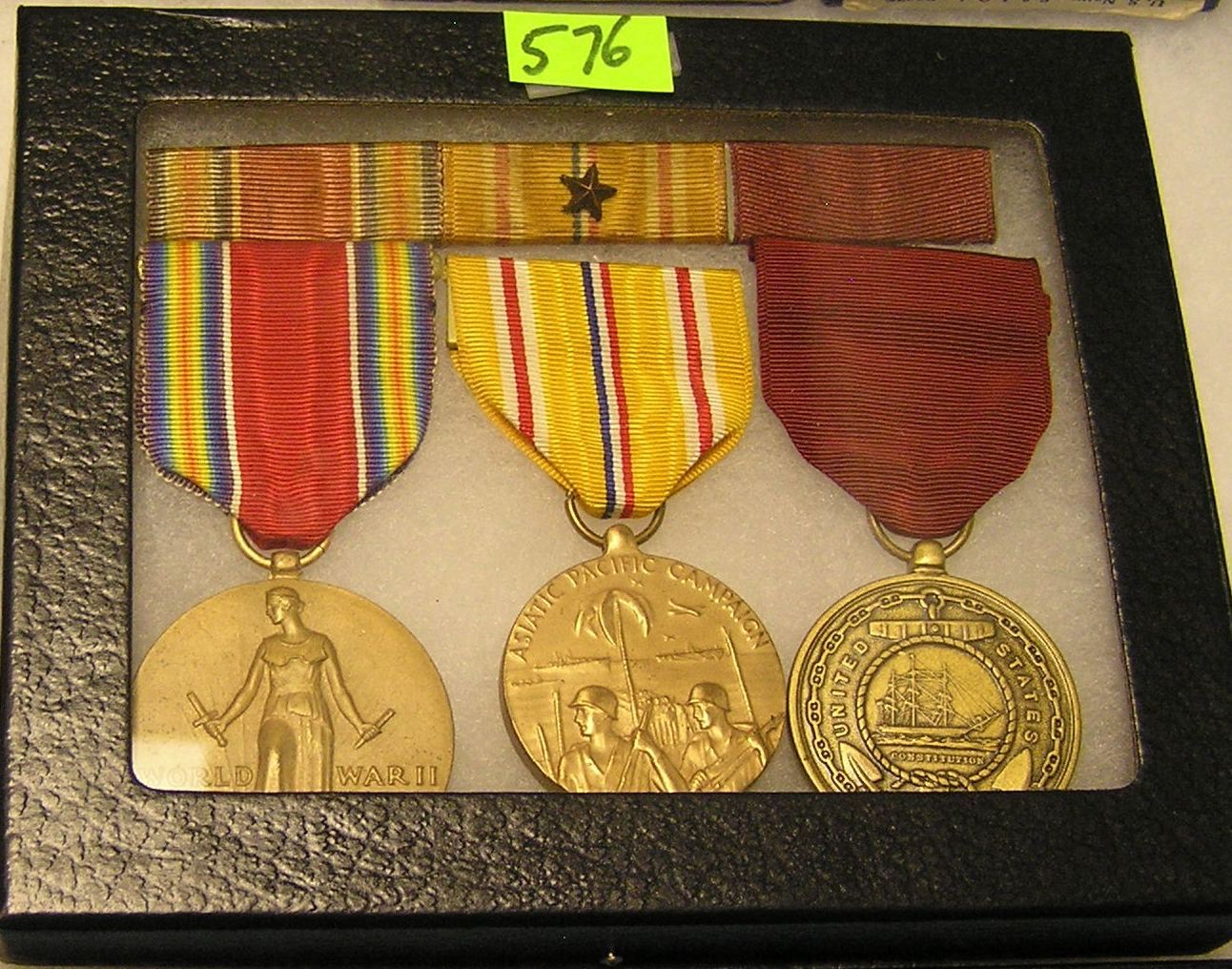 WWII Military veterans three piece medal, ribbon and bar set est. value $300.00-$325.00