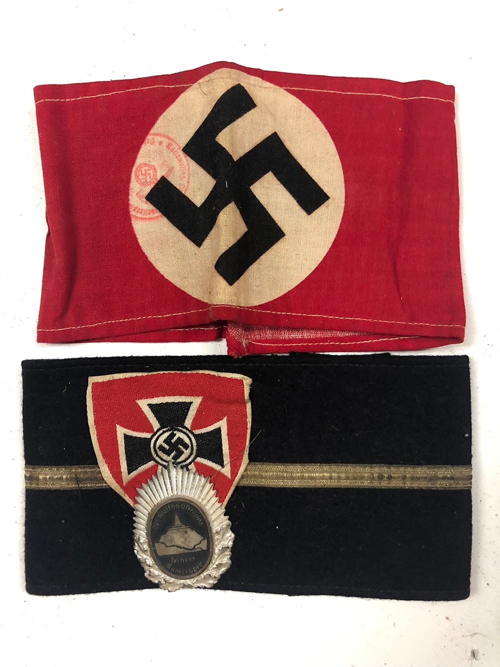 WWII Military armbands, one with German medal. All original and very well taken care of.