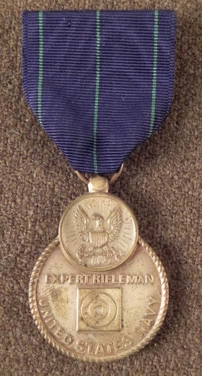 OFFERED HERE IS A WWII NAVY EXPERT RIFLEMAN AWARD MEDAL & RIBBON. THIS IMPRESSIVE AWARD IS A PIN BACK. * * * *