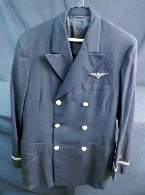WWII NAVY PILOT UNIFORM AND PANTS - OFFICER BULLION PILOTS EAGLE - 1944 - TAILOR MADE---GREAT LOOKING TAILOR MADE WWII 1944 US FLIGHT PILOT UNIFORM COAT AND PANTS - TAILOR MADE - GREAT QUALITY - SIZE 38.5 AND 1944 ON TAILOR (FINCHLEY) LABEL - NAVAL WINGS ON BREAST OF COAT - GOLD NAVY BUTTONS - LABEL ON PANTS ALSO BULLION STAR AND STRIPES ON SLEEVE
