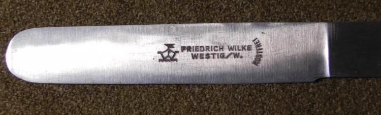 WWII NAZI FIELD MESS KIT KNIFE-ORIG-MAKER MKD-EX COND8" LONG---MAKER MARKED "FRIEDRICH WILKE-WESTIG/W.--ROSTFREI" WITH LOGO