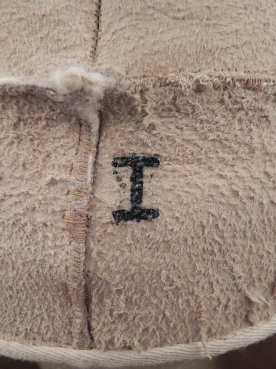 WWII NAZI LUFTWAFFE RUSSIAN FRONT/WINTER SHEEPSKIN & WOOL/LEATHER CAP * * GREAT LOOKING WWII NAZI LUFTWAFFE FLYERS SEVERE COLD WEATHER FUR HAT.--PELZMUTZEN--OUTSIDE BODY OF CAP IS MULTI-PIECE SHEEPSKIN--LUFTWAFFE EAGLE AND NATIONAL COCKADE WMBROIDERED AND SEWN ON FRONT--LARGE BRIM HAS A LEATHER TOP AND A CANVAS TYPE FABRIC UNDERSIDE--THERE IS A HARD TO READ INK STAMP ON THE UNDERSIDE BRIM--THE CAP INSIDE IS A SHEEPS WOOL AS IS THE FOLD DOWN EAR AND NECK FLAPS--THE FLAP CLOSURE WHEN FOLDED IS HELD IN PLACE BY A BUTTON AND LOOP--THERE ARE INSIDE SIDE FLAP SNAP CLOSURES TO OPEN FOR HEARING IN COMBAT--GREAT LOOKING HAT *