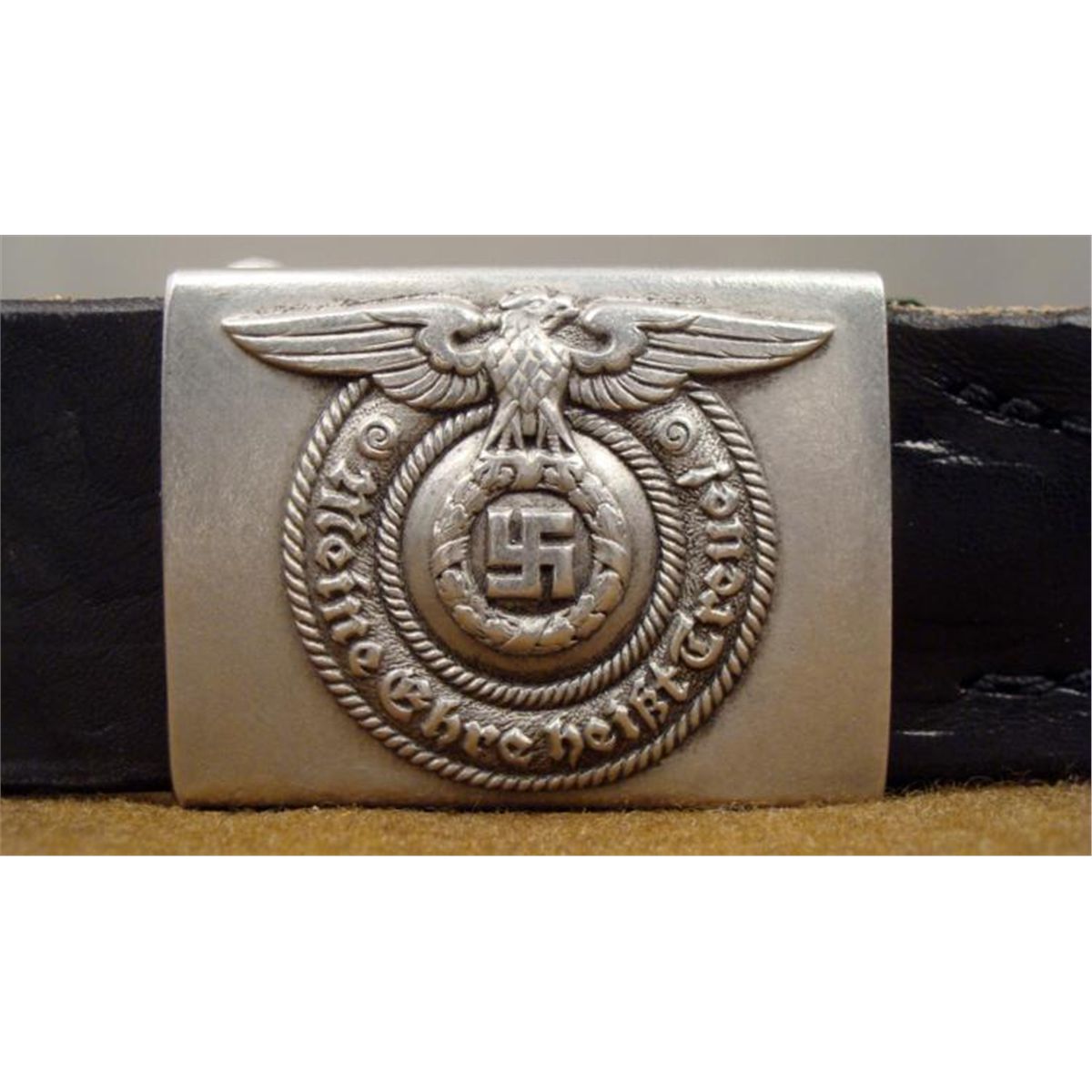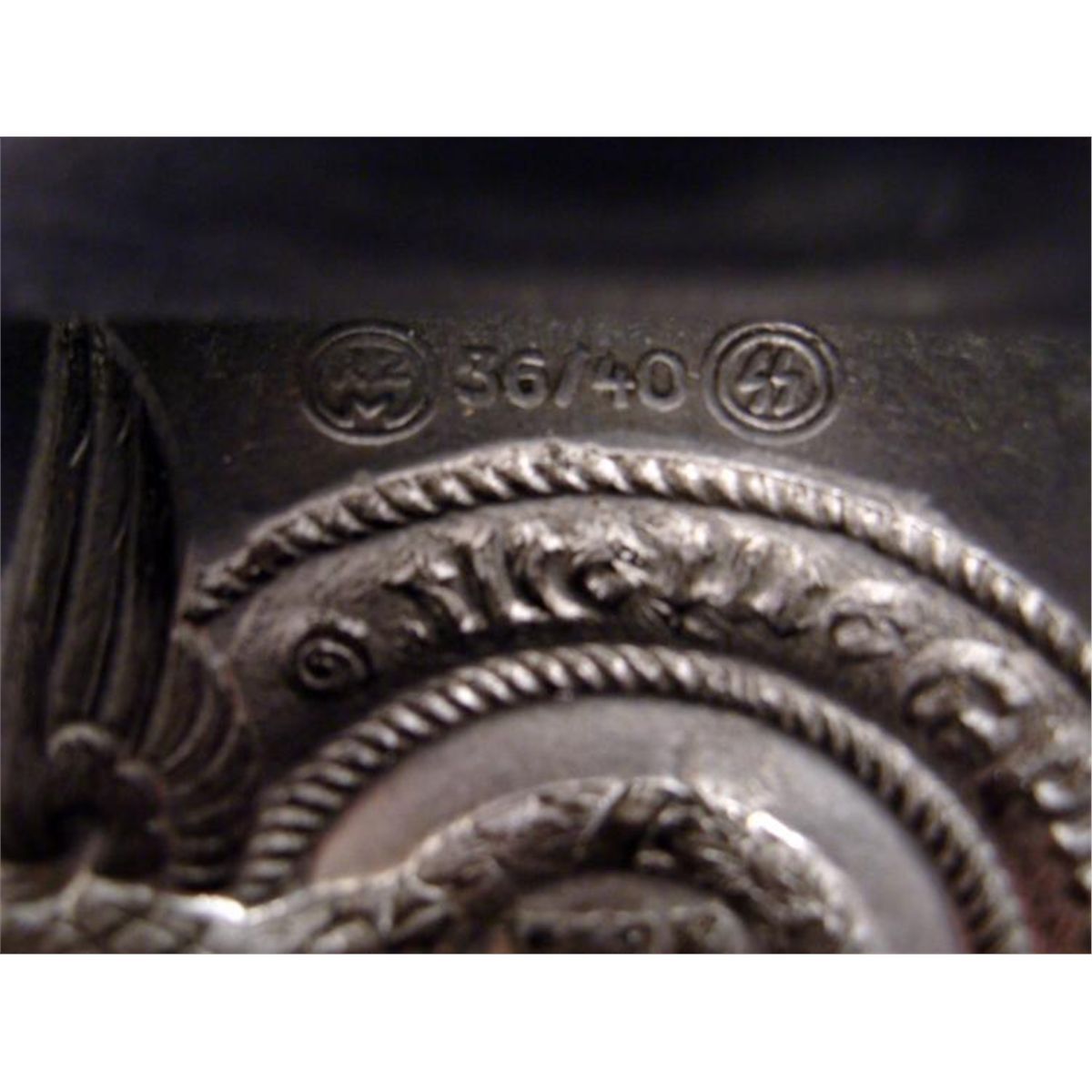 WWII NAZI SS EM BUCKLE AND BELT-RARE * EARLY BELT BUCKLE THAT IS MARKED "RZM-36/40-SS" *