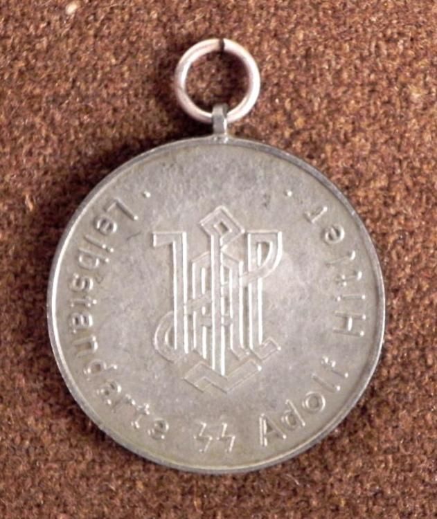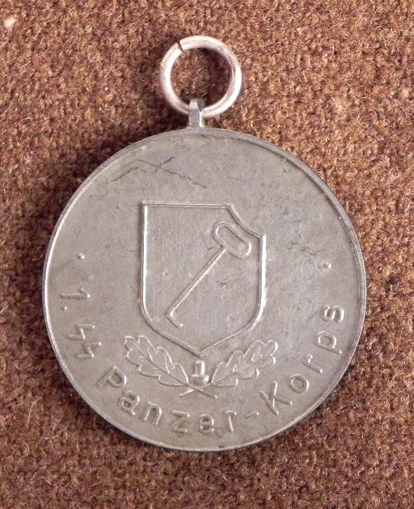 WWII NAZI SS LIEBSTANDARTE SS ADOLF HITLER-1. SS PANZER-KORPS LARGEAWARD MEDALGREAT SS AWARD. HAS INSIGNIA OF THE 1ST SS PANZER KORPS-"LIEBSTANDARTE ""ADOLF HITLER"" ON EACH SIDE-DIAMETER IS 38 MM-RIBBON NOT"PRESENT.