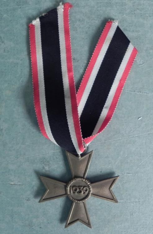 WWII NAZI WAR MERIT CROSS AWARD W/RIBBON-ORIG-MALTESE CROSS W/SWASTIKA- BRONZE CROSS HAS SWASTIKA ON ONE SIDE AND 1939 ON THE OTHER-GREAT ORIGINAL CONDITION