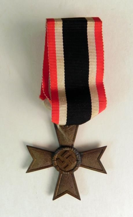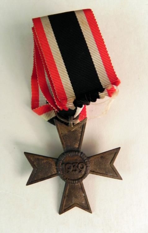 WWII NAZI WAR MERIT CROSS W/RIBBON-RING MAKER MKD "65"-NICE ORIG---MALTESE CROSS-ONE SIDE SWASTIKA--OTHER 1939