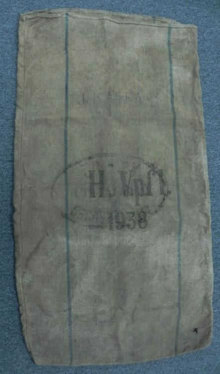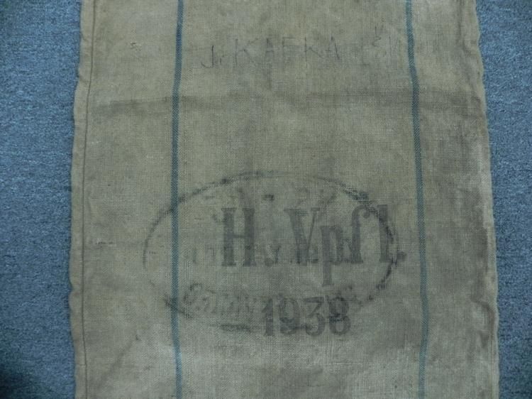 Offered is a WWII Nazi Burlap Donation Bag. It was originally used for collecting items for the war, particularly for winter relief. On the outside of the bag there is a name handwritten, "J. Kafka". It also reads "H. Vpfl. - 1938". On the other side ther