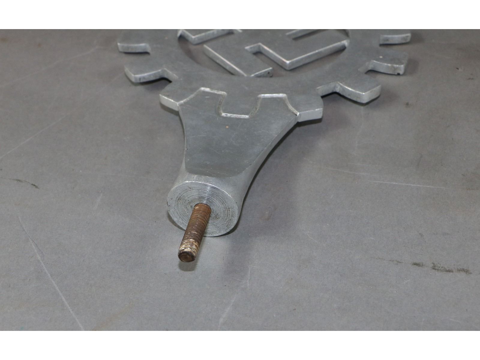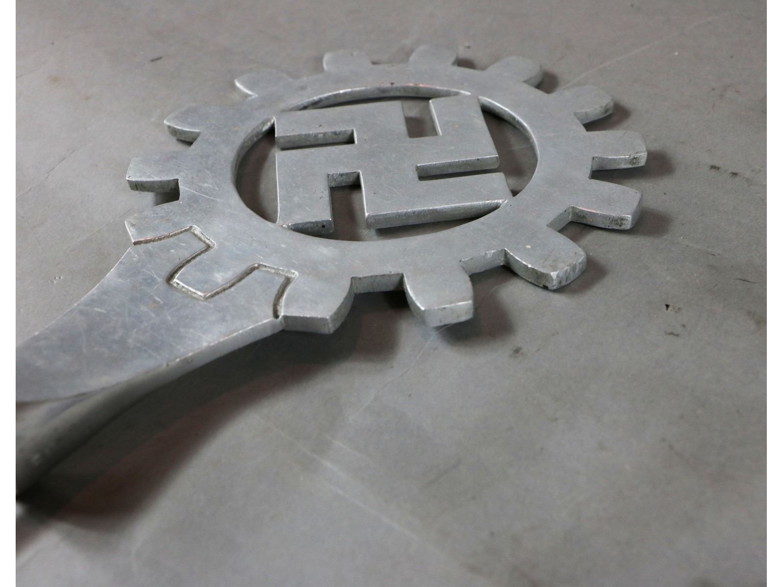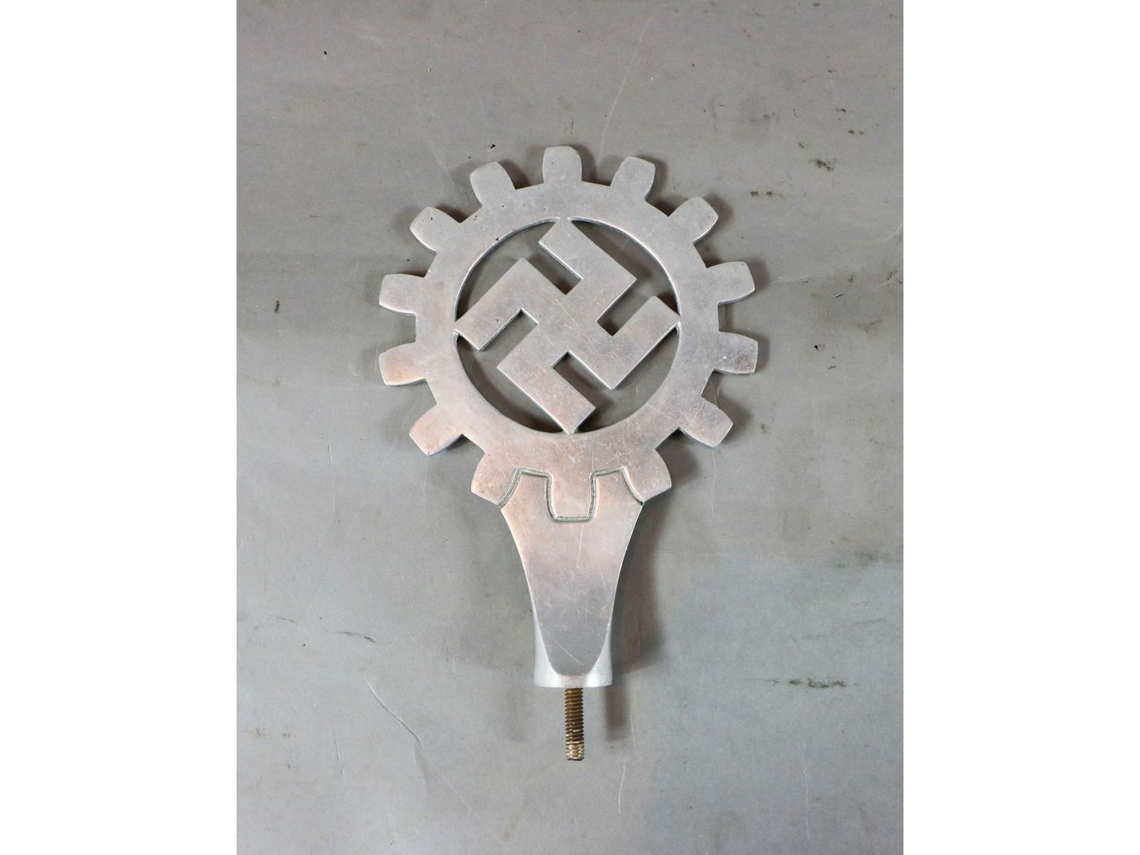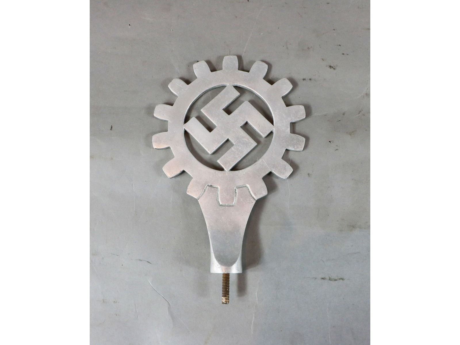 "DAF" flag pole top swastika with cog wheel.