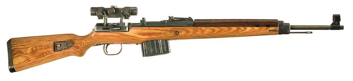 The rough cast receiver is marked "G43/duv44", with correct "eagle/ 214" proofs, rough bolt carrier, machined action cover, reproduction G43 scope mount and ring set, original WWII ZF4 scope, original lens caps and rubber eye cup, current production laminated stock, original late war Durofol hand guard, two original magazines, green canvas and leather magazine pouch, a MG13 magazine and a reproduction wooden scope case.
