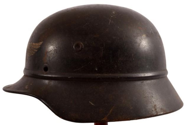Has Front "Luftschutz" decal and Nazi Swastika and Eagle decal on left side, Partial stamp on inside "..e-Stahl..." Luftschutz was the air protection warning civilian service to warn the public of impending air raids.