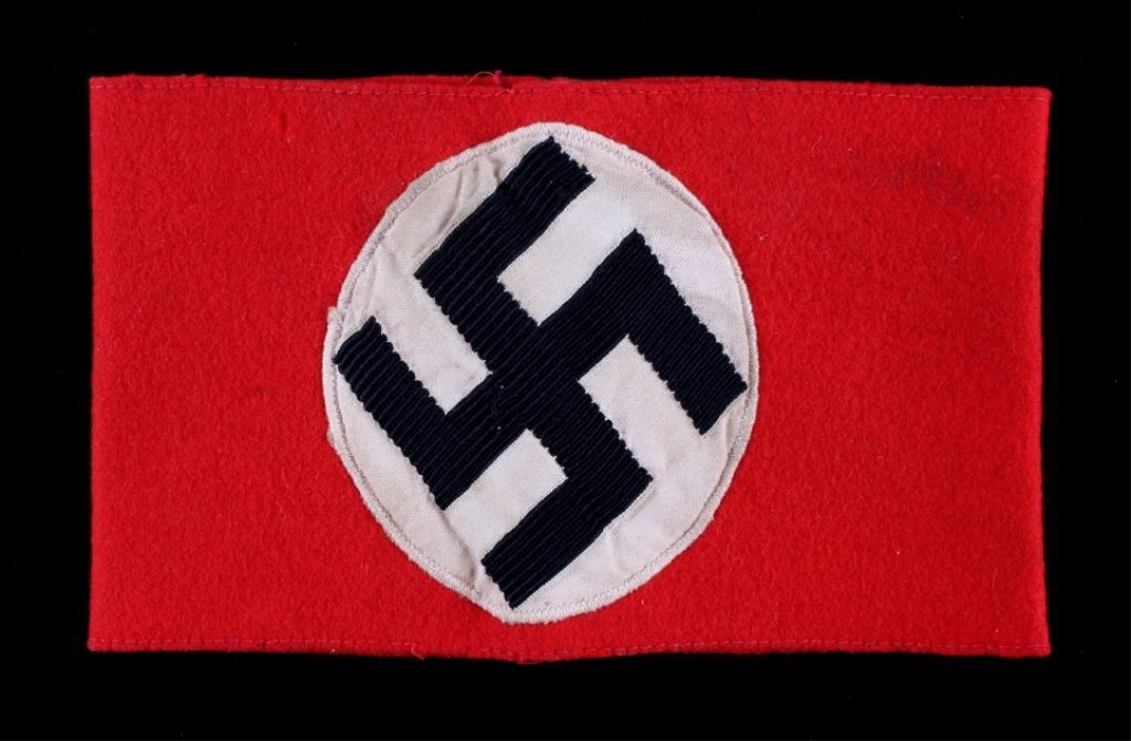 This is an original World War II Nazi German swastika armband believed to be from an officer. The piece is in very good condition showing the round white circle with the black swastika in the center. Armband measures 4"x6.5" with a center medallion that is 3"x3.5"