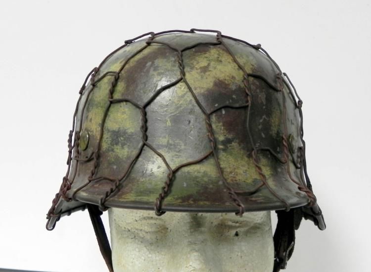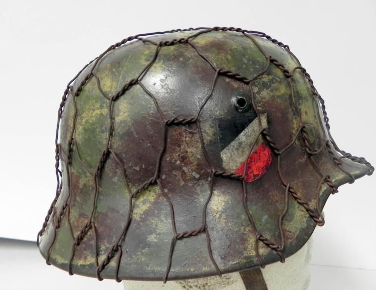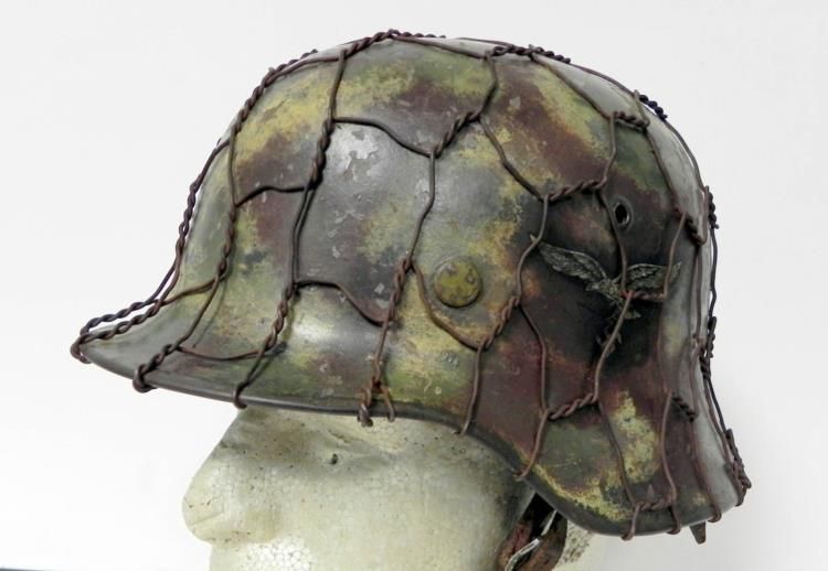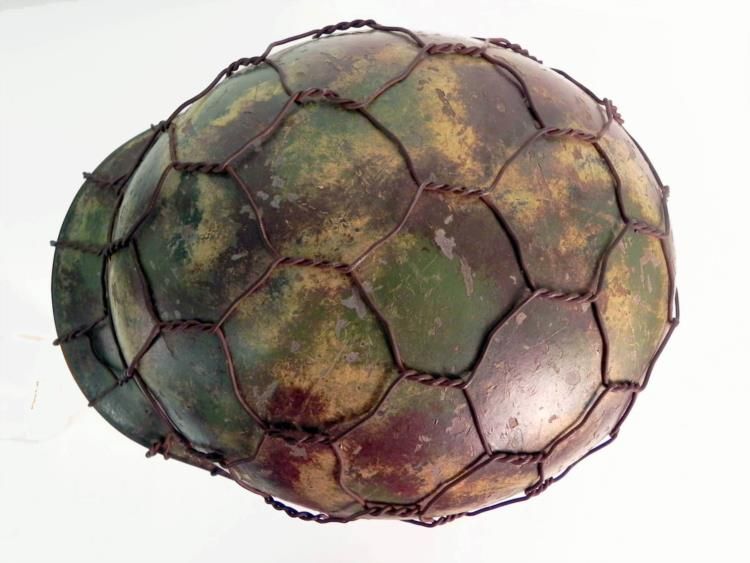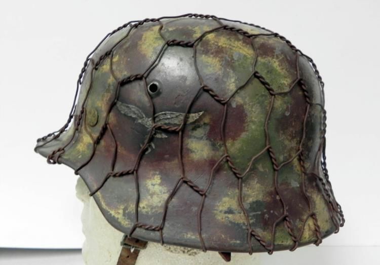 Offered here is this Nazi Luftwaffe Helmet. It is the original camo shell with double decals. It has a maker mark and is numbered on the inside.